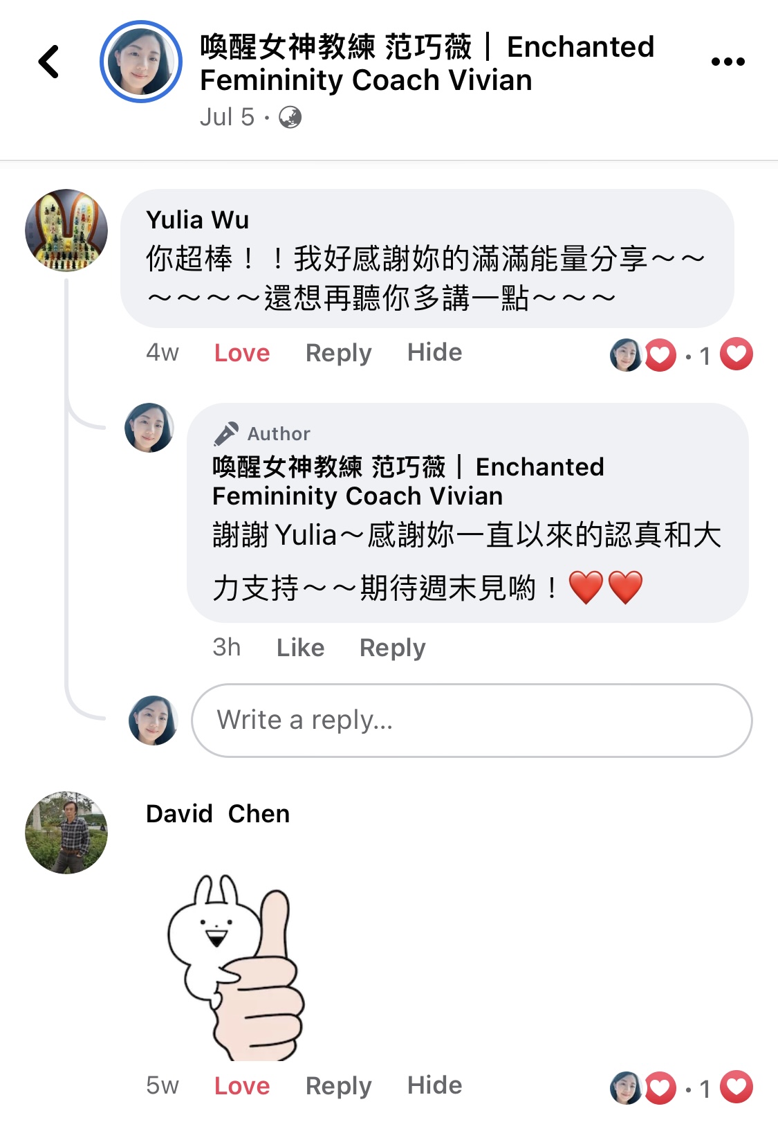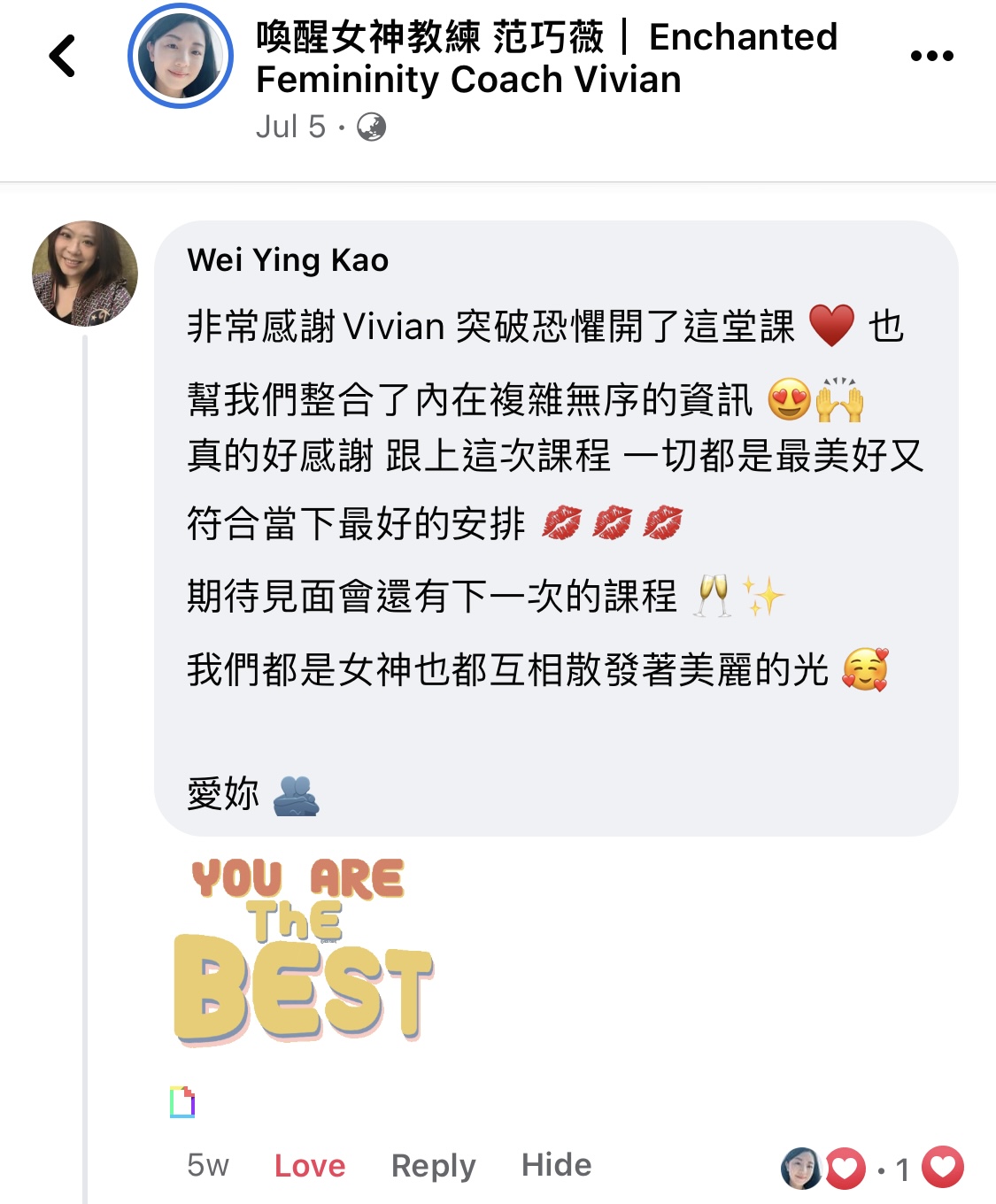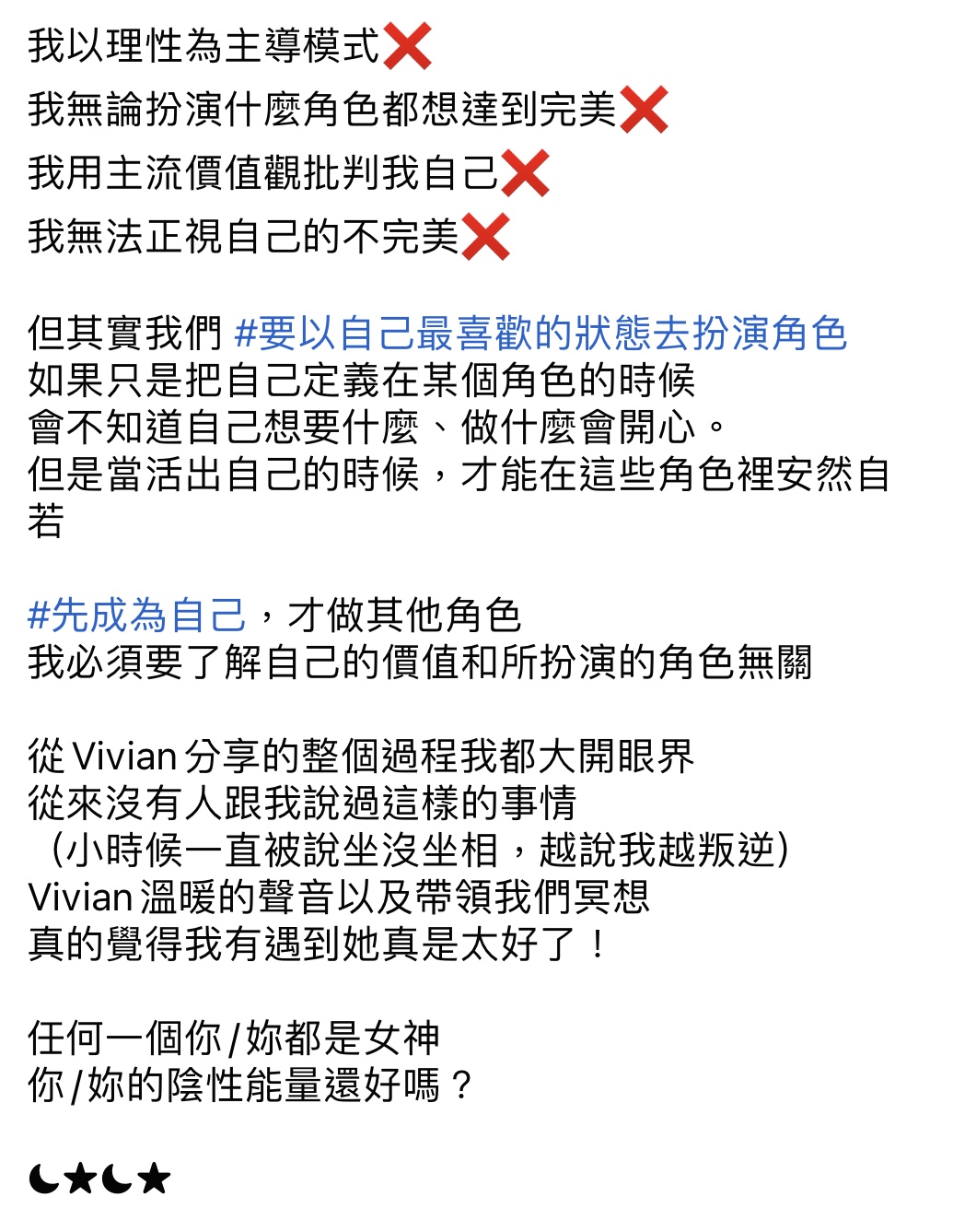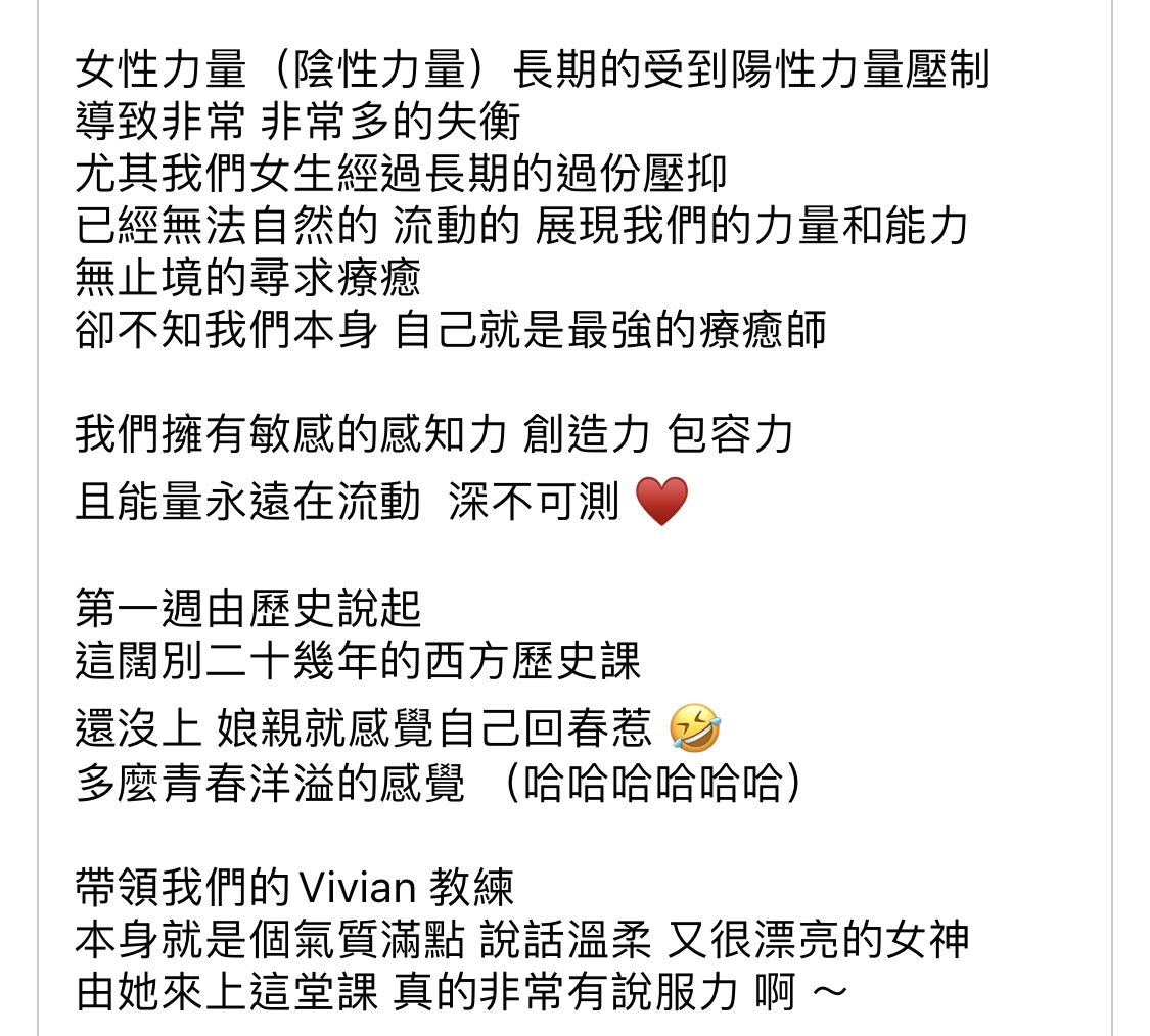期待見面還有下一次的課程,我們都是女神也都互相散發著美麗的光。愛妳🫂