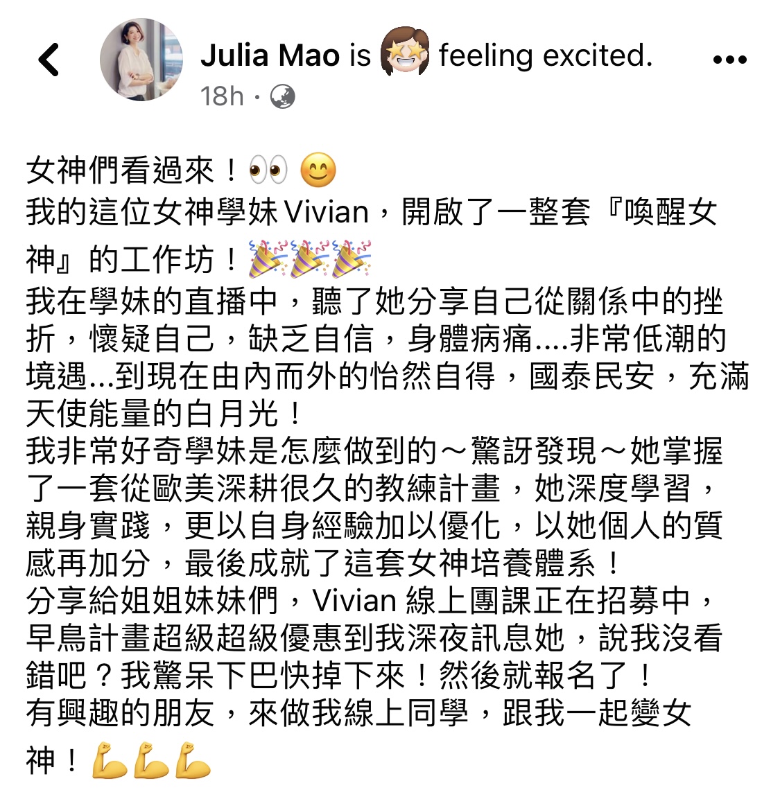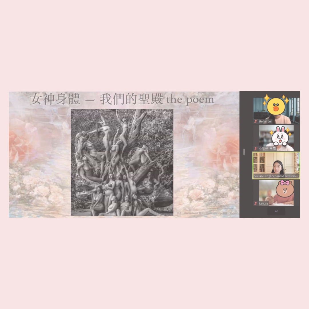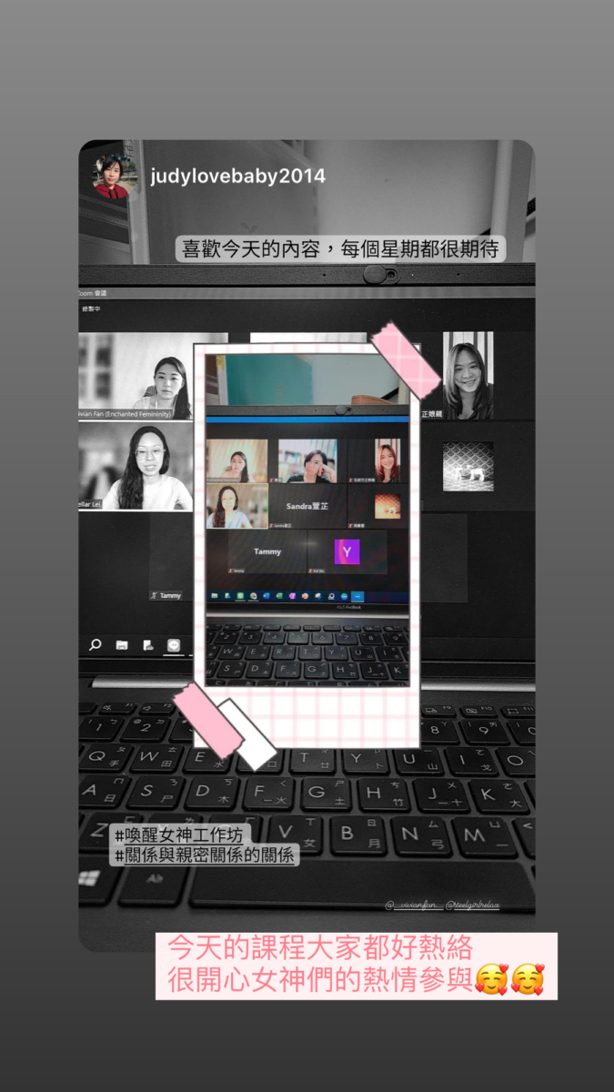 每週的線上團聚與溫暖的分享,很感恩自己能夠提供這樣的安全的環境給學生們,一起學習,釋放,愛上我們內在的女神。